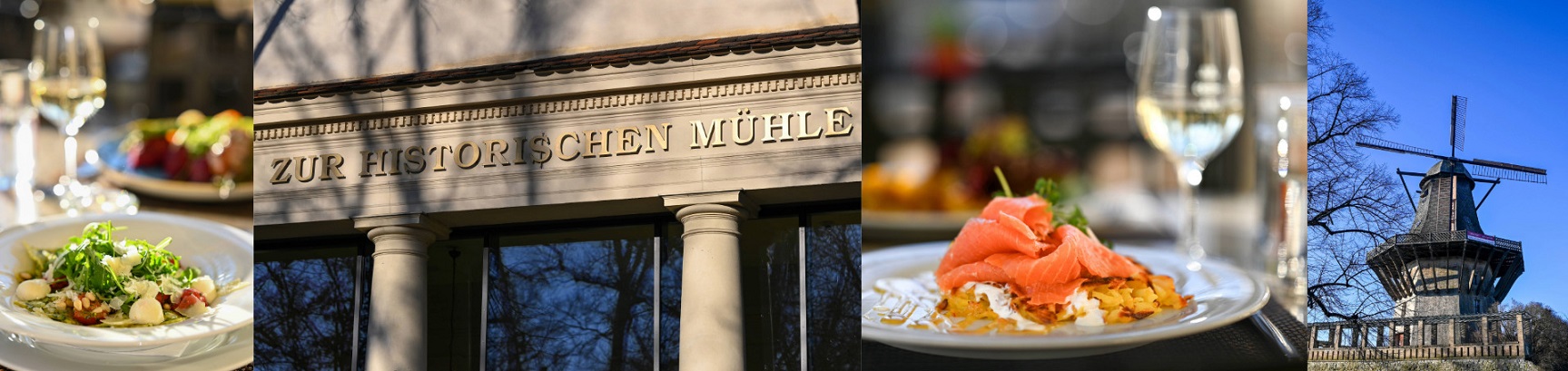 Zwischen der historischen Mühle und dem Schloss Sanssouci. Da, wo einst Friedrich der Große im Sommer „sans soucis“ – ohne Sorgen – residierte. In dieser kulturell interessanten Umgebung heißt Restaurant „Zur Historischen Mühle“ seine Gäste willkommen. Von der Sonnenterrasse über den Palmensaal bis zum Biergarten – hier lässt sich die feine und abwechslungsreiche Gastronomie in wunderschönem Ambiente zelebrieren.